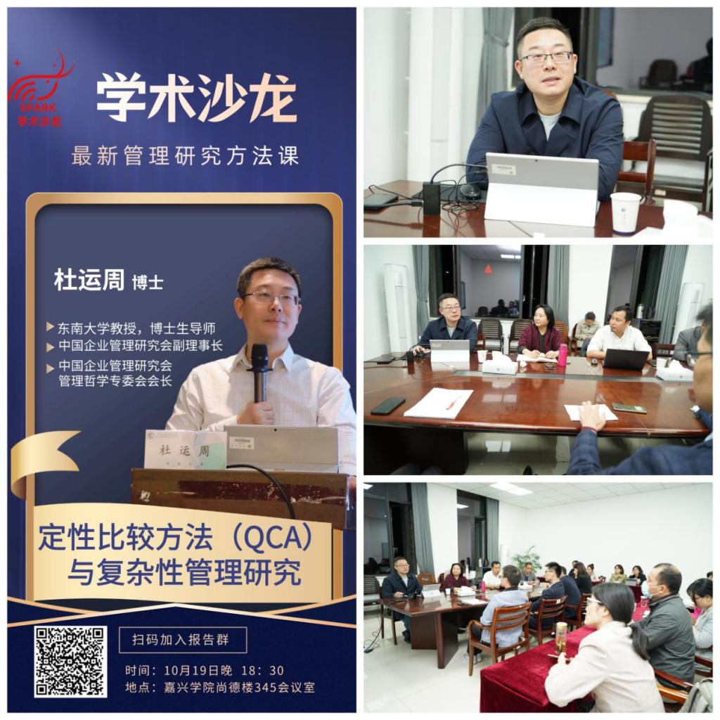 杜运周教授为全体老师带来了管理研究领域的新方法“定性比较方法(QCA)”。杜教授从“QCA研究方法的基本思想”、“QCA方法也传统研究方法的区别”、“QCA方法在国际管理学届的发展”、“QCA方法的主要范式和注意事项”等方面系统介绍了QCA这种新的研究方法。杜教授鼓励老师们适应管理学发展的新趋势,通过学习QCA等新研究方法,不断创新拓展学术空间。