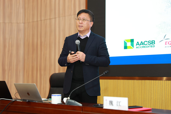 3月3日下午,浙江大学管理pg麻将胡了2 院长魏江教授应邀到pg麻将胡了2 ,作题为“不惧未来已来,唯恐过去未去”的学术报告。pg麻将胡了2 全体教师、研究生聆听了本次学术报告。报告会由pg麻将胡了2 院长潘煜双教授主持。