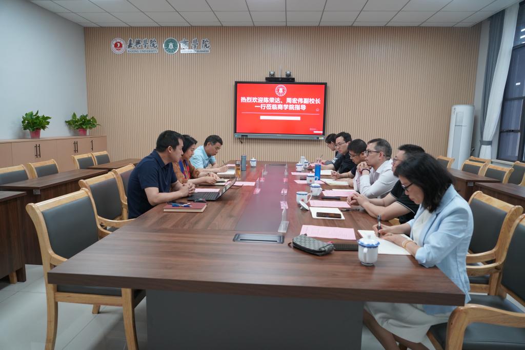 5月6日下午,副校长陈荣达、周宏伟带队到pg麻将胡了2(中国)官方网站 进行科研平台管理与效能提升专题调研座谈会。pg麻将胡了2 院长潘煜双、副院长翁胜斌和工商系李杰义教授参加调研座谈会。