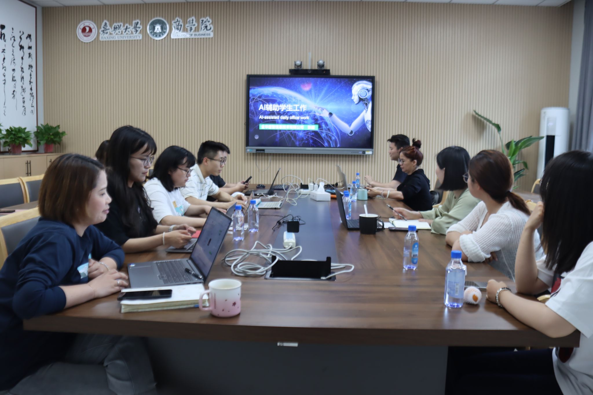 培训会上,张超从AI辅助编写总结汇报、AI辅助数据分析与PPT生成、就业辅导员智能体实超以及知识库、本地化部署与微调四个维度深入剖析了AI在学生工作中的应用场景与操作技巧。全体参训人员全程全神贯注,纷纷带上电脑,紧跟张老师的节奏进行实际操作练习。在培训过程中,大家积极提问、热烈讨论,现场气氛十分活跃。通过亲身体验,参训人员对AI在学生工作中的应用有了更深刻的认识和理解,纷纷表示收获颇丰。