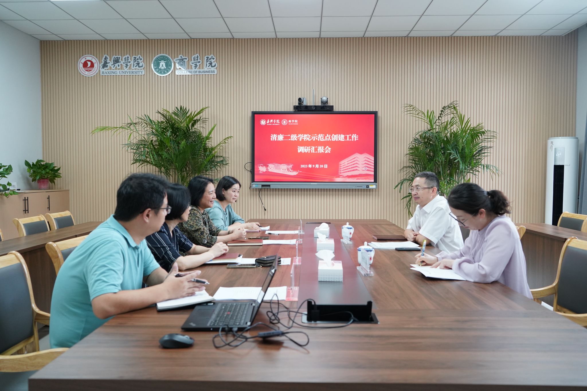 9月20日下午,校党委委员、纪委书记、省监委驻嘉兴pg麻将胡了2 监察专员陈新友一行到pg麻将胡了2 调研清廉二级pg麻将胡了2 示范点创建工作,校纪检监察室、巡察办副主任杨碧瑜随同调研。pg麻将胡了2 党委书记邵燕、院长潘煜双,党委副书记、纪委书记潘欣等参加座谈交流。