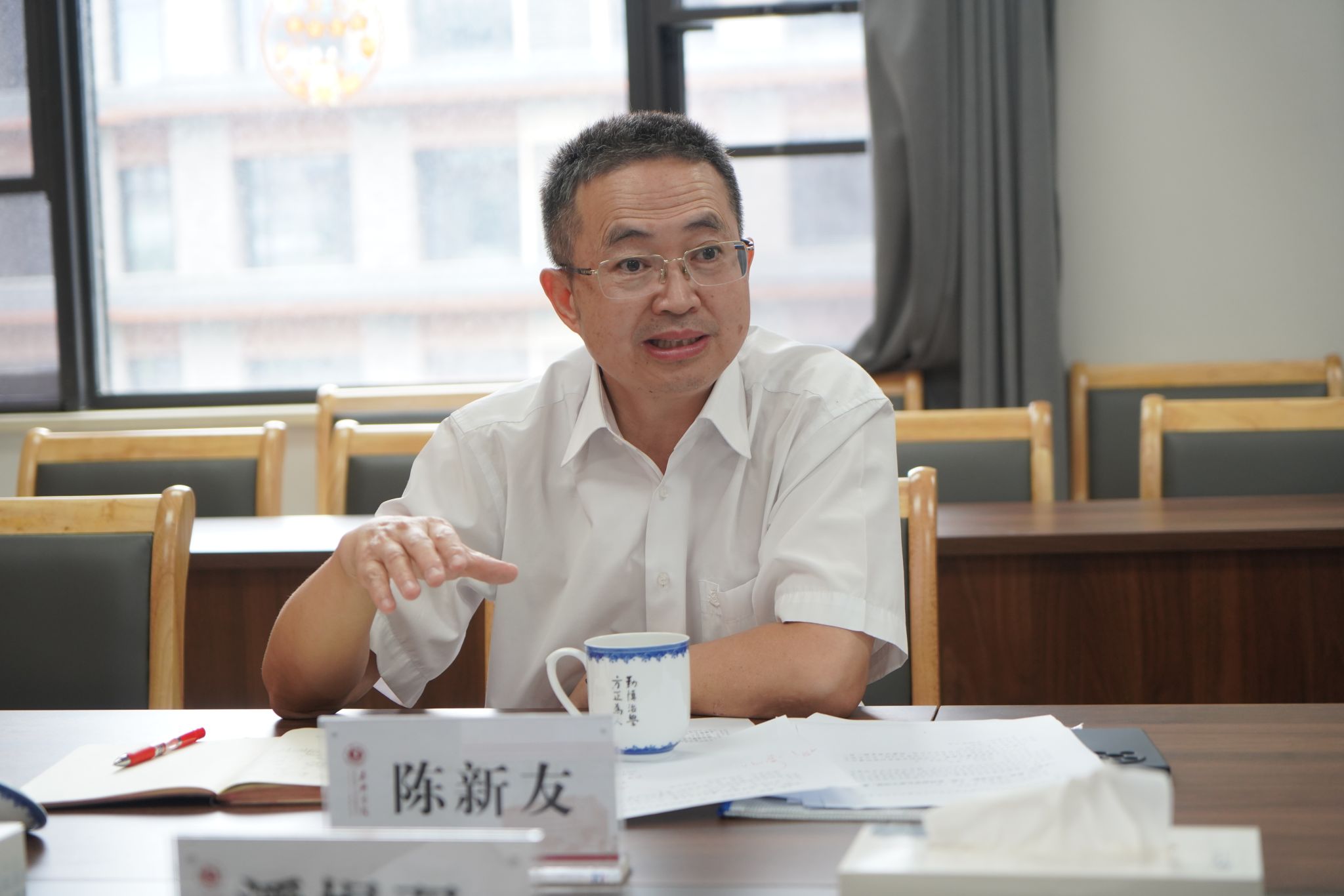 会后,陈新友一行参观了pg麻将胡了2 院史墙、党群之家、“双带头人”党支部书记工作室、清风驿站建设点。