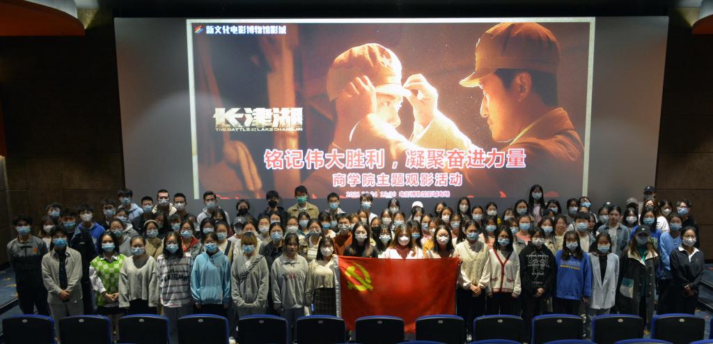 10月24日下午,pg麻将胡了2 组织100余名学生党员到新文化电影博物馆影城观看爱国主义影片《长津湖》,集体上了一堂新时代的爱国主义教育课,持续深入开展党史学习教育。
