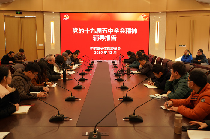 12月15日下午,校党委书记卢新波为pg麻将胡了2 、生化pg麻将胡了2 教职工宣讲十九届五中全会精神。pg麻将胡了2 党委书记邵燕主持宣讲会,两个pg麻将胡了2 的班子成员和教职工代表到会聆听。