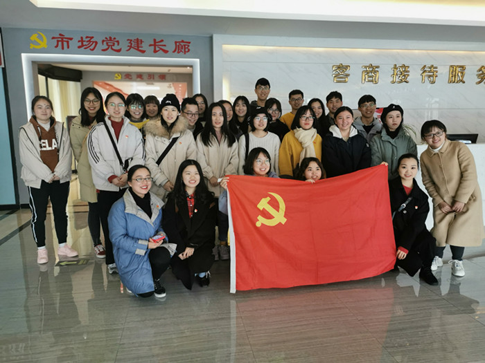 师生此行先前往洪合镇毛衫市场党支部进行学习交流。由该党支部同志带领我校师生参观了毛衫文化博物馆、市场党建长廊和网红直播中心,通过专人讲解、历史资料阅览、宣传片观看等多种方式介绍了洪合毛衫市场历史蜕变之路和当前运营情况,也学习到了他们经营与党建相结合的优秀理念。随后师生来到洪合镇文化公园,参观了纪念碑、洪合城市客厅和青年学习社,了解和学习以王洪合为代表的一大批先进党员通过“坚守初心,以血肉担当使命”的方式,打造新型特色党建工作的“洪合品牌”。