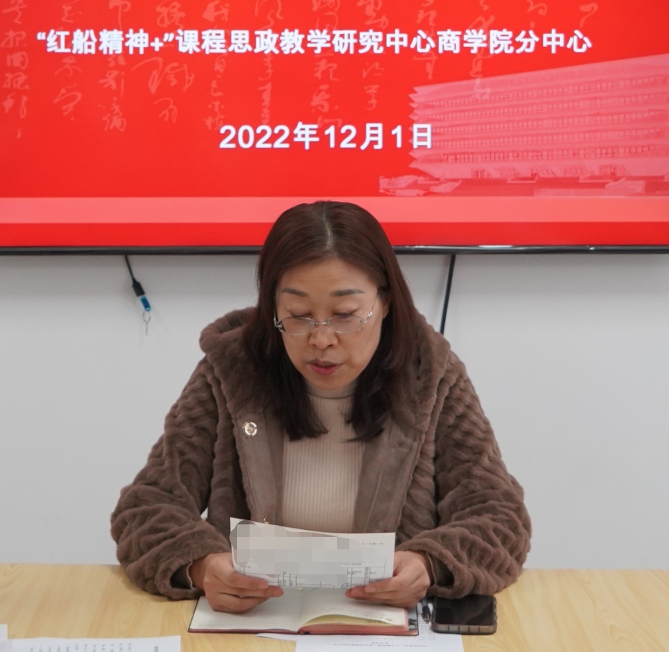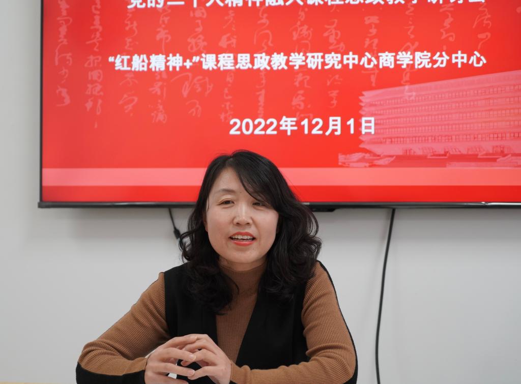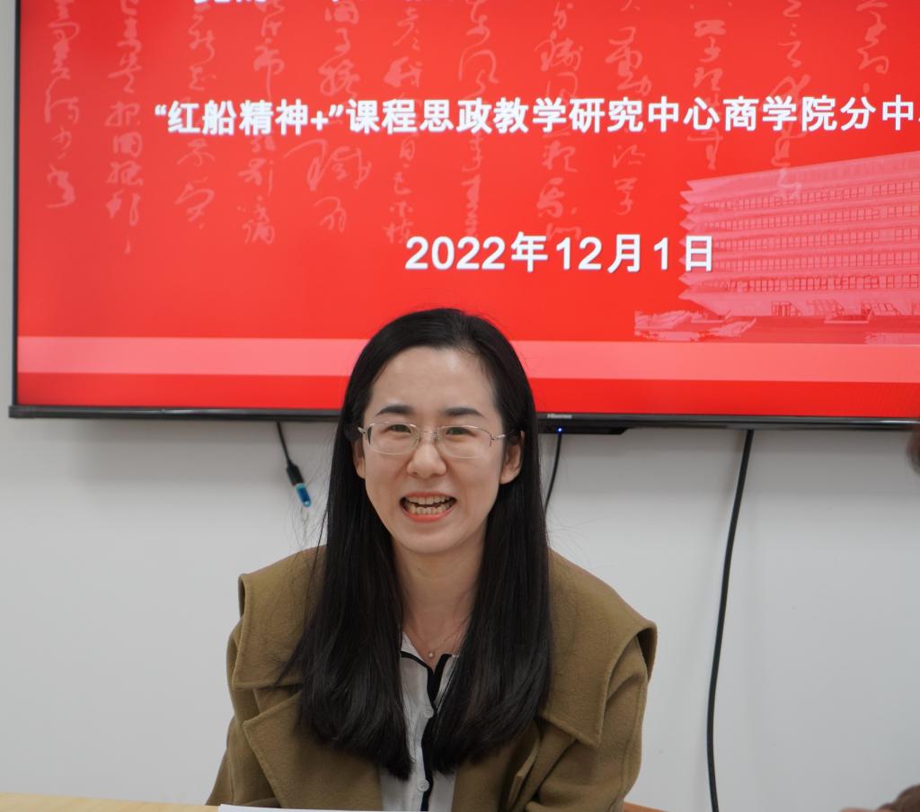 财务管理系主任董淑兰围绕财务管理专业课程思政校级教学团队建设,介绍了以课程组为基础,以课程为抓手,将合法合规教育、环境保护、“双碳”目标、企业社会责任等思政元素融入课堂,坚持做好“大思政课”的教学实践探索。市场营销系主任方芳介绍了嘉兴pg麻将胡了2 课程思政示范基层教学组织“营销课程群课程思政教学团队”建设自立项以来开展的工作,重点交流了把党的二十大精神融入课程思政,将理想信念、爱党爱国爱人民、社会主义核心价值观、法治精神、中华文化传统等元素渗透到教学各环节的思考。会计系赵春苗老师介绍了《高级财务会计》省级课程思政示范课程,在“红船引领、立德树人”的核心思想引领下,依托会计学国家级一流专业建设、省级虚拟教研室、互联网+会计一体化教学改革,创新“四位一体”教学体系,形成全过程育人的实践探索。人力系郭如平老师结合省一流课程《招聘与甄选》课程思政教学改革实践,介绍了如何把党的二十大精神融入课程、融进课堂,如何使学生在情感上、精神上产生共鸣,增强学生的认同感和同理心的做法。