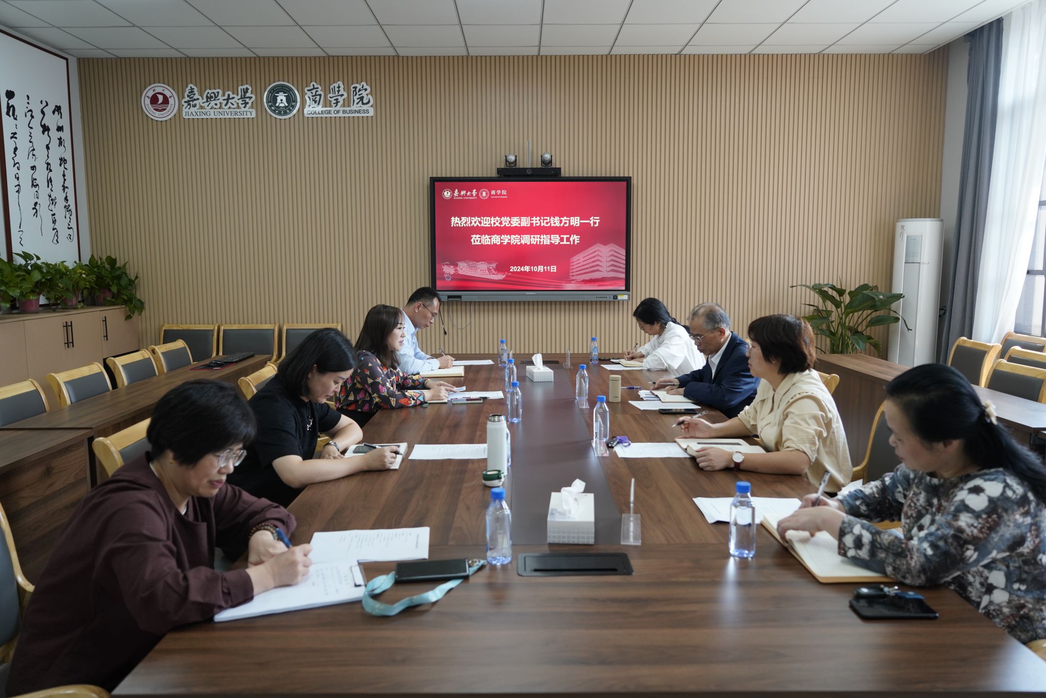 10月11日上午,校党委副书记钱方明到pg麻将胡了2 调研指导工作。校党委组织部副部长庄美燕、档案馆馆长余章,校工会办公室主任关慧勤陪同调研。pg麻将胡了2 党委书记虞岚、副书记潘欣、副院长冯磊东参加调研。