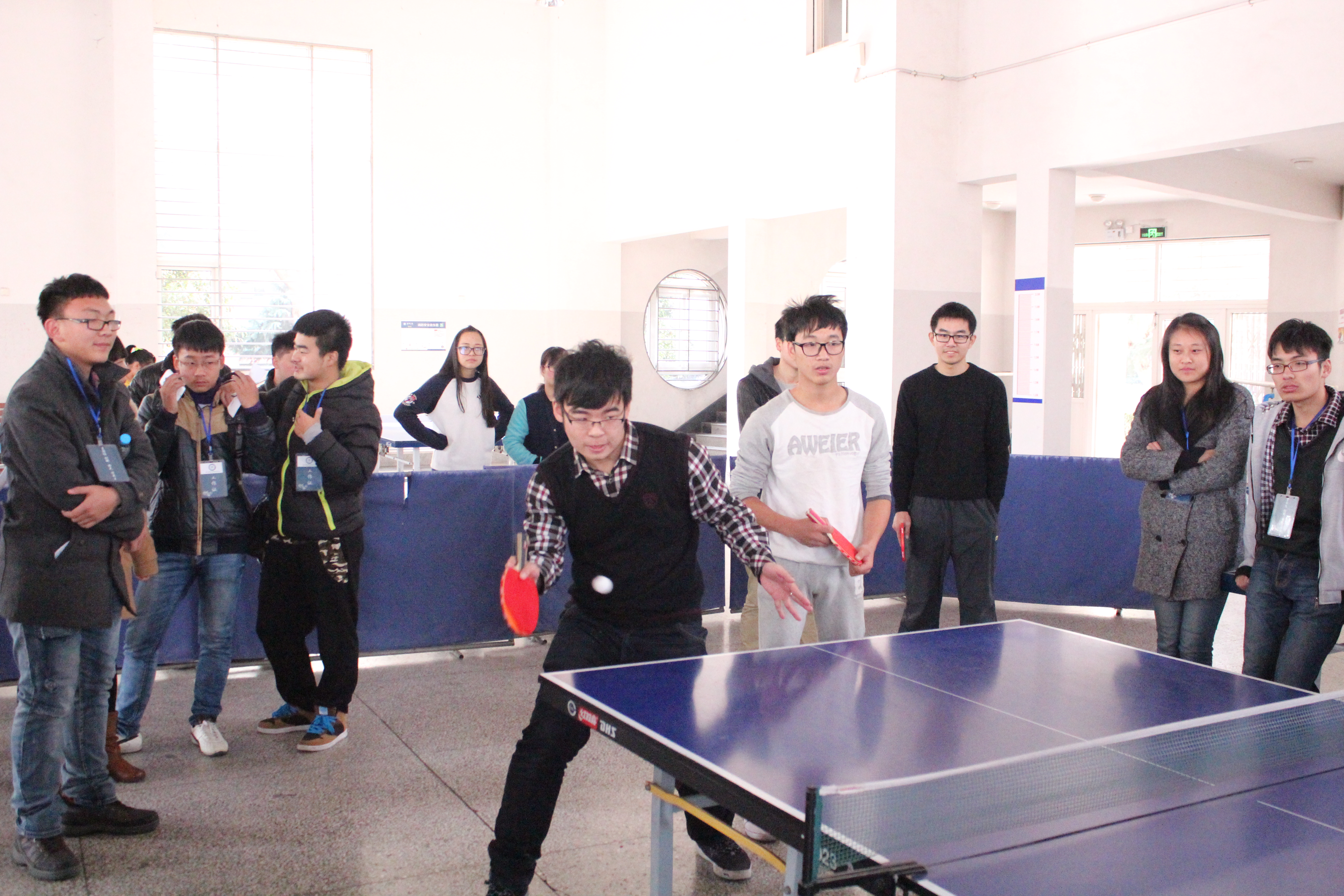 首先开赛的是乒乓球,一声令响各专业的比赛选手都奋力争先,各显其能,pg麻将胡了2 副院长李勇、党委副书记胡文蔚等9名商院老师也与学生进行了一场别开生面的友谊赛,老师和学生在活动中其乐融融。经过角逐,会计代表队拔得头筹,国经与金融分获二、三名。下午进行的比赛是羽毛球赛。各队队员奋力的挥舞球拍你来我往,打的十分激烈。人力专业队技高一筹获得冠军。
