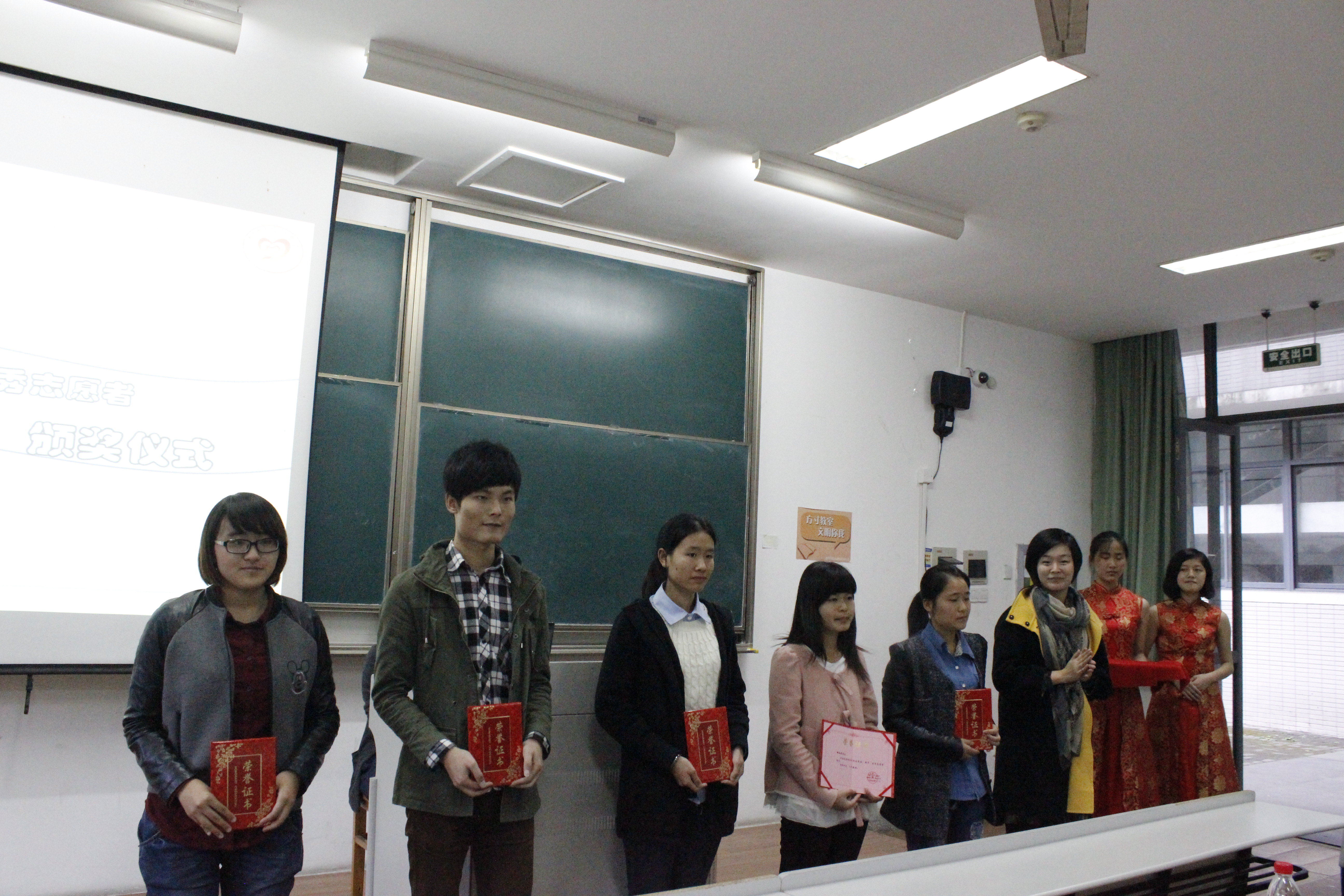 徐凯同学首先回顾了青协在过去一年中的成果与收获。接着,由潘欣老师为优秀志愿者颁奖并有请志愿者代表吴雁珂发言,分享她在志愿活动中的感受并带领全场师生、嘉宾宣誓。然后,青协志愿者带来了精彩的手语操表演。最后,潘欣老师高度赞扬了青协的工作,提出了宝贵的建议并对其以后的发展抱以殷切期望。