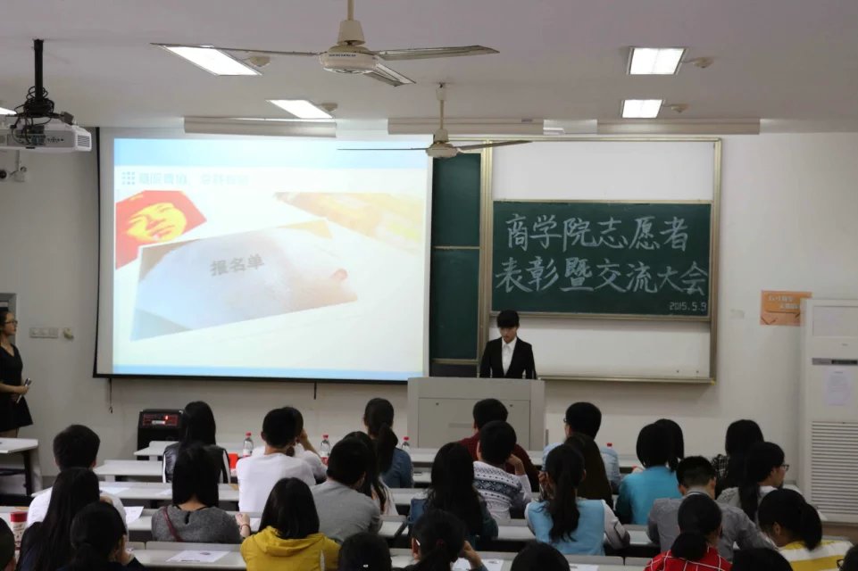 2015年5月9日下午两点半,pg麻将胡了2 志愿者表彰暨交流大会在教二A126顺利召开。pg麻将胡了2 团委李朋朋老师、团委副书记阮鋆燕同学、学生会主席团成员以及120余名青年志愿者参加了大会。