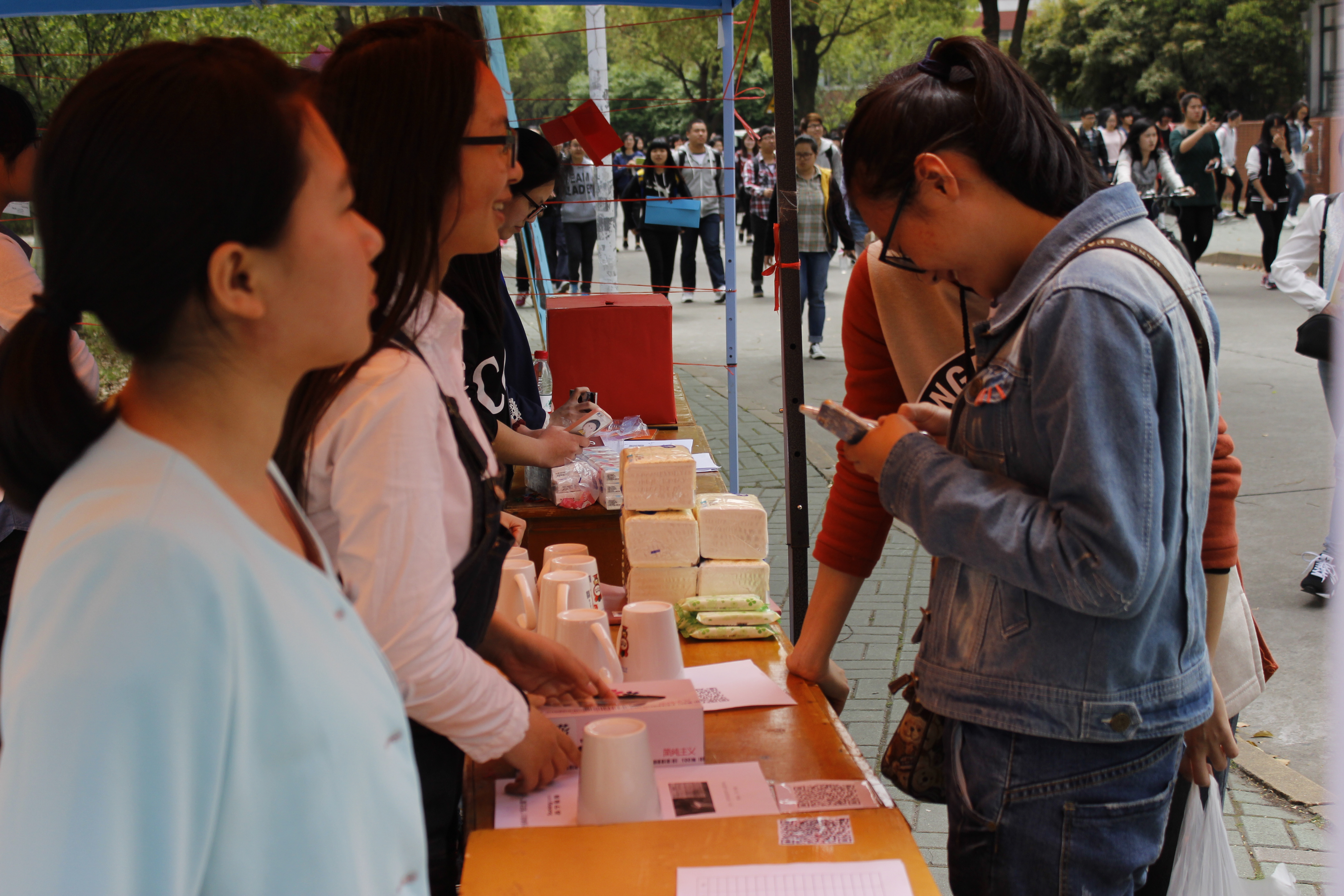 早上7点,同学们便来到活动地点布置场地并积极耐心地向同学宣传这次活动内容和目的,鼓励他们参与爱心活动。每一位献爱心的同学都将获得一个小礼物。青协还设置“时光慢递”信箱,爱心同学们可以对一年后的自己或友人的写寄语,青协于一年之后寄给收件人,作为对献爱心同学的回馈。活动受到了很多同学的支持,甚至有大四的学长也加入到爱心团队来,他们热情地献上自己的爱心,并鼓励青协继续开展更多服务社会的公益活动。