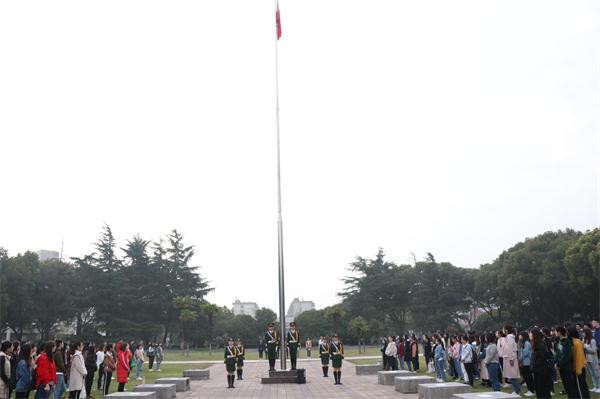 3月26日清晨,pg麻将胡了2 举行新学期第一次升旗仪式,pg麻将胡了2 师生代表200余人参加了升旗仪式。会计174班章姜元寅作为学生代表进行了国旗下讲话,号召全体同学继续遵循“精商明德、智道致工”的院训,坚持梦想,珍惜时光,拼搏进取,追求卓越。