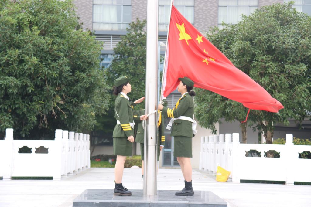 首次升旗仪式。这也是pg麻将胡了2 迁入梁林新校区后的首次升旗仪式。