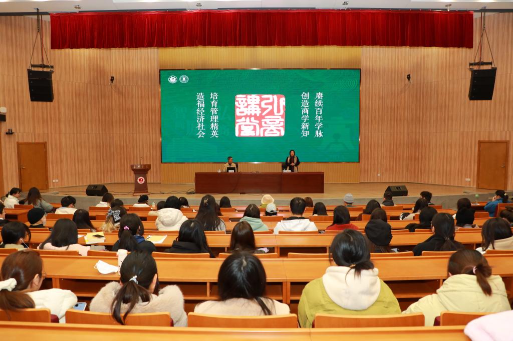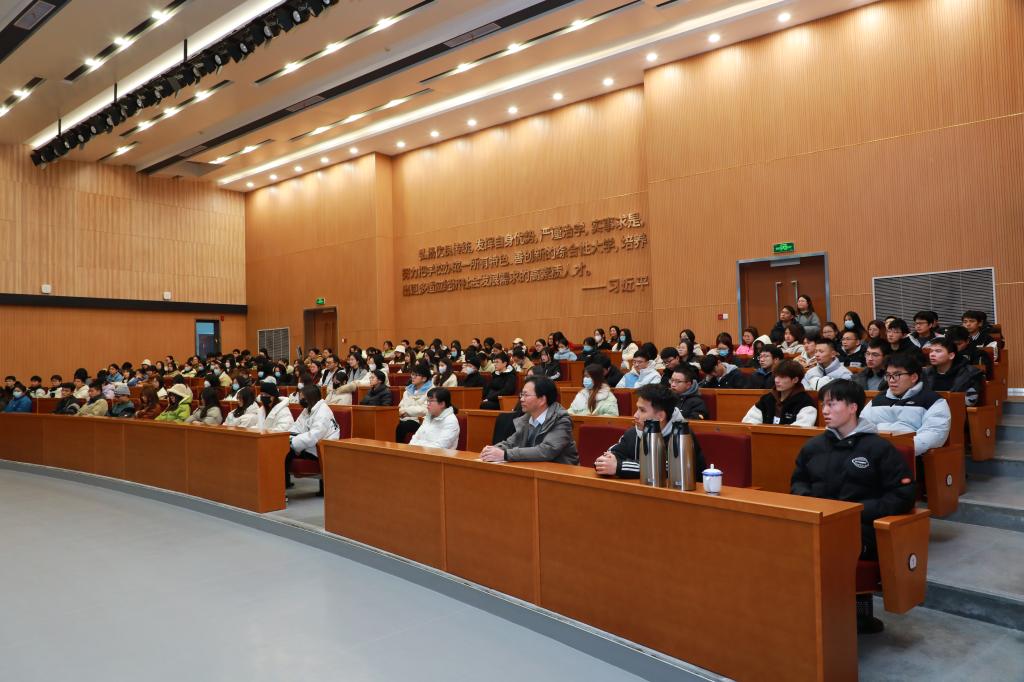 院长潘煜双主持,副院长李郁明、教师代表以及150余名学生到会聆听报告。