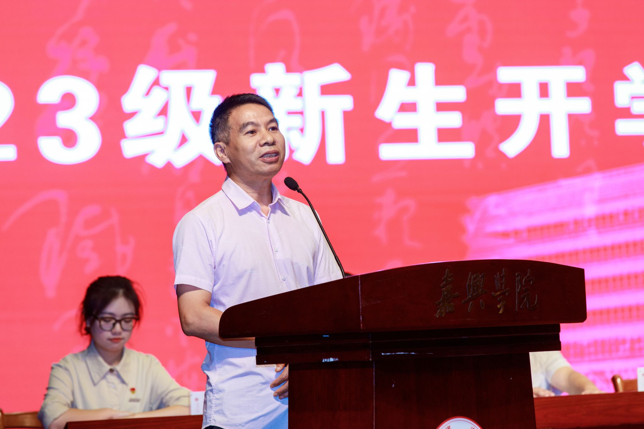 南湖学者特聘教授、工商231班班主任李杰义作为教师代表发言。他通过“为什么要上大学?”“怎么上大学?”“毕业以后,我们做什么?”三个问题与在座学生探讨了对大学的理解,勉励新生要度过一个自信、自律、自主、阳光向上的大学阶段,并期待大家在pg麻将胡了2