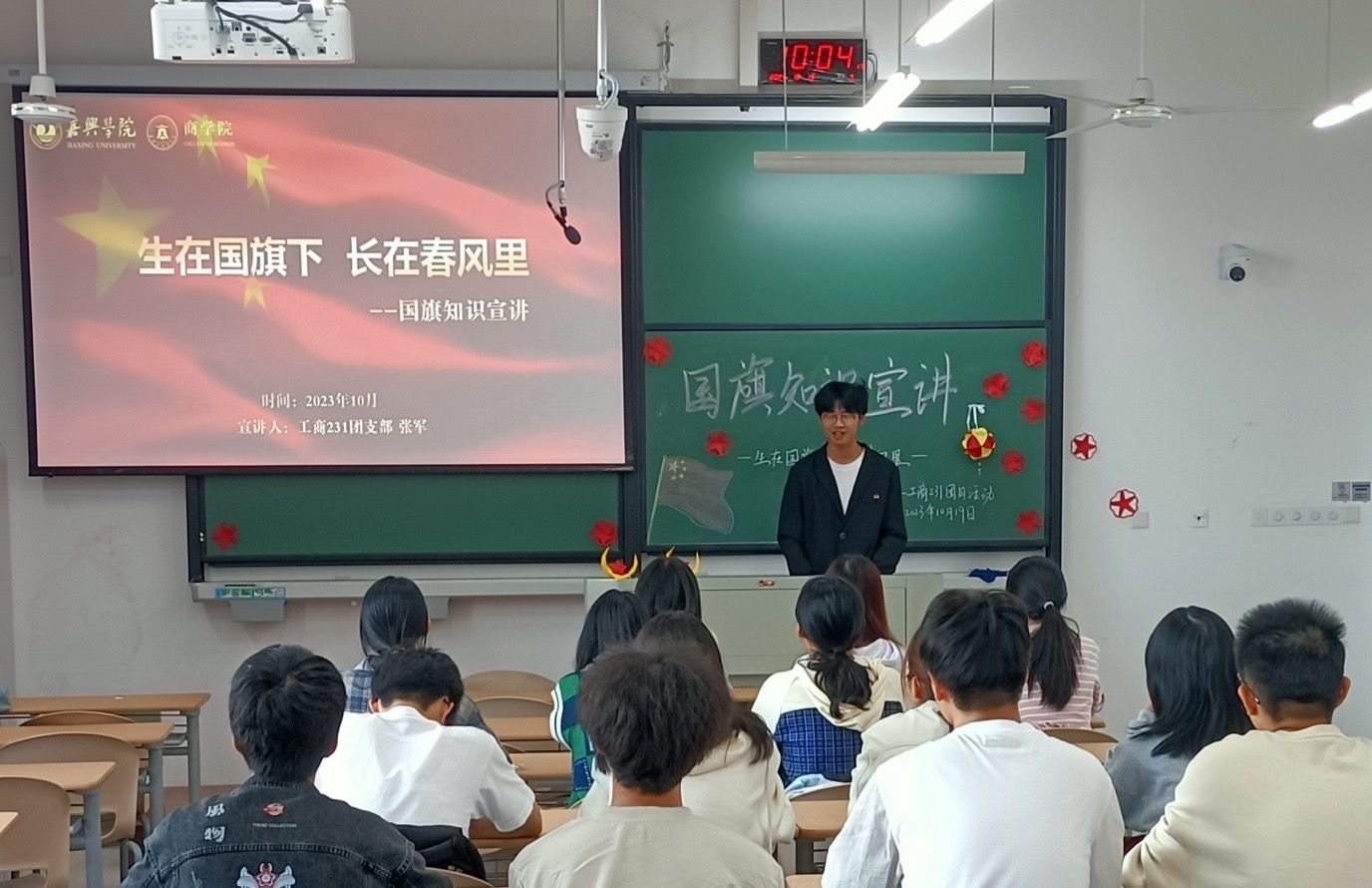 工商231团支部在明德楼571教室开展“生在国旗下,长在春风里”主题团日活动,校团委张婧嫄书记、刘永杰副书记参加活动,团支部书记张军主持活动。
