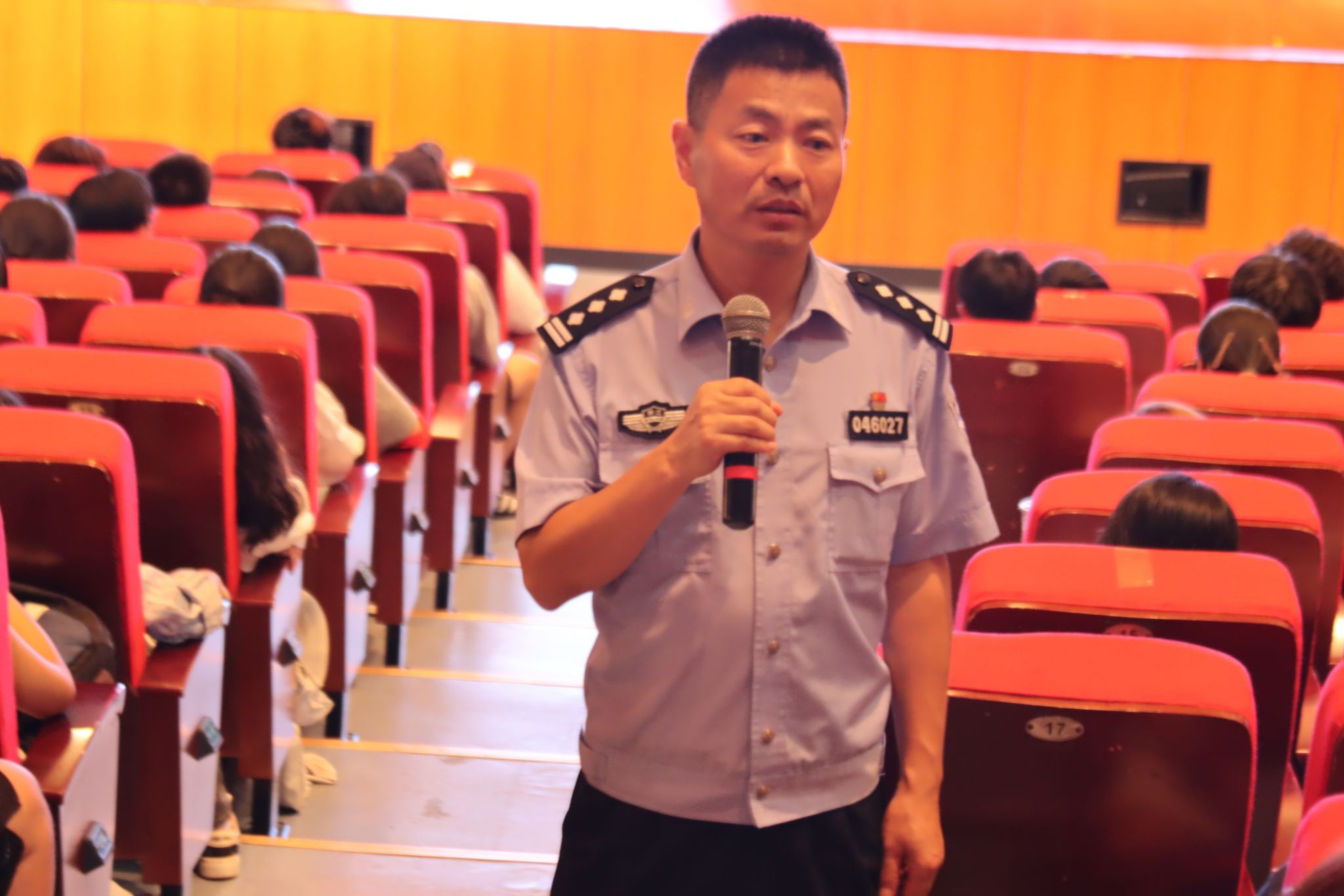 城南派出所张秋江警官为2024级同学们带来了一场别开生面的“开学第一课”。张警官通过摆数据、说案例、提要求详细讲解了网络电信诈骗、消防安全、交通安全等常见的校园安全问题,他提醒新生们一定要时刻保持警惕性,必须始终牢固树立“安全第一、防范为主”的安全意识。