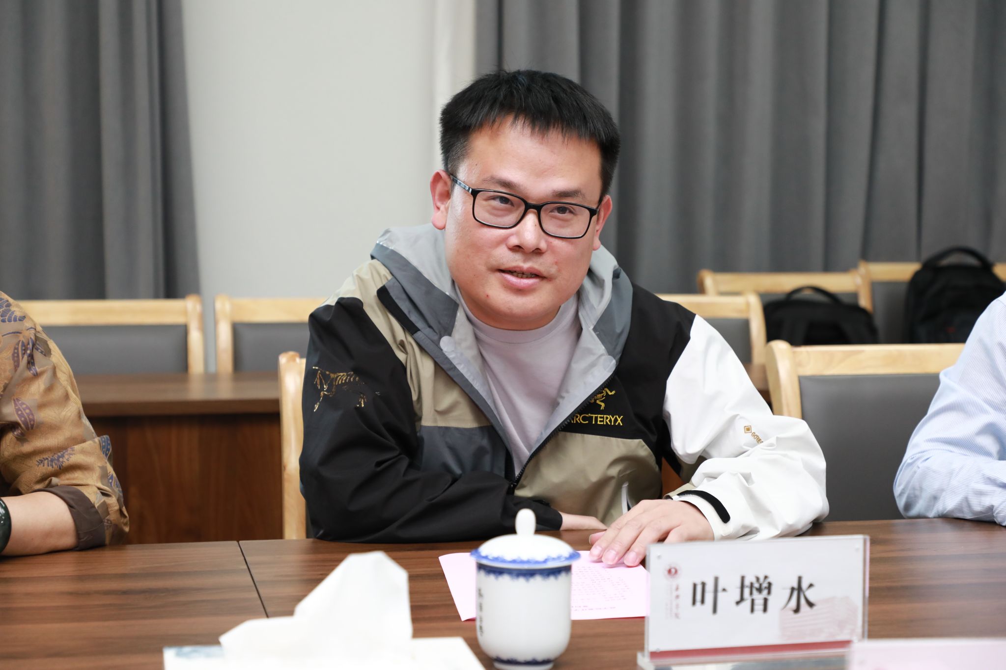 潘煜双还代表pg麻将胡了2 为叶增水颁发捐赠证书;与会代表合影留念。