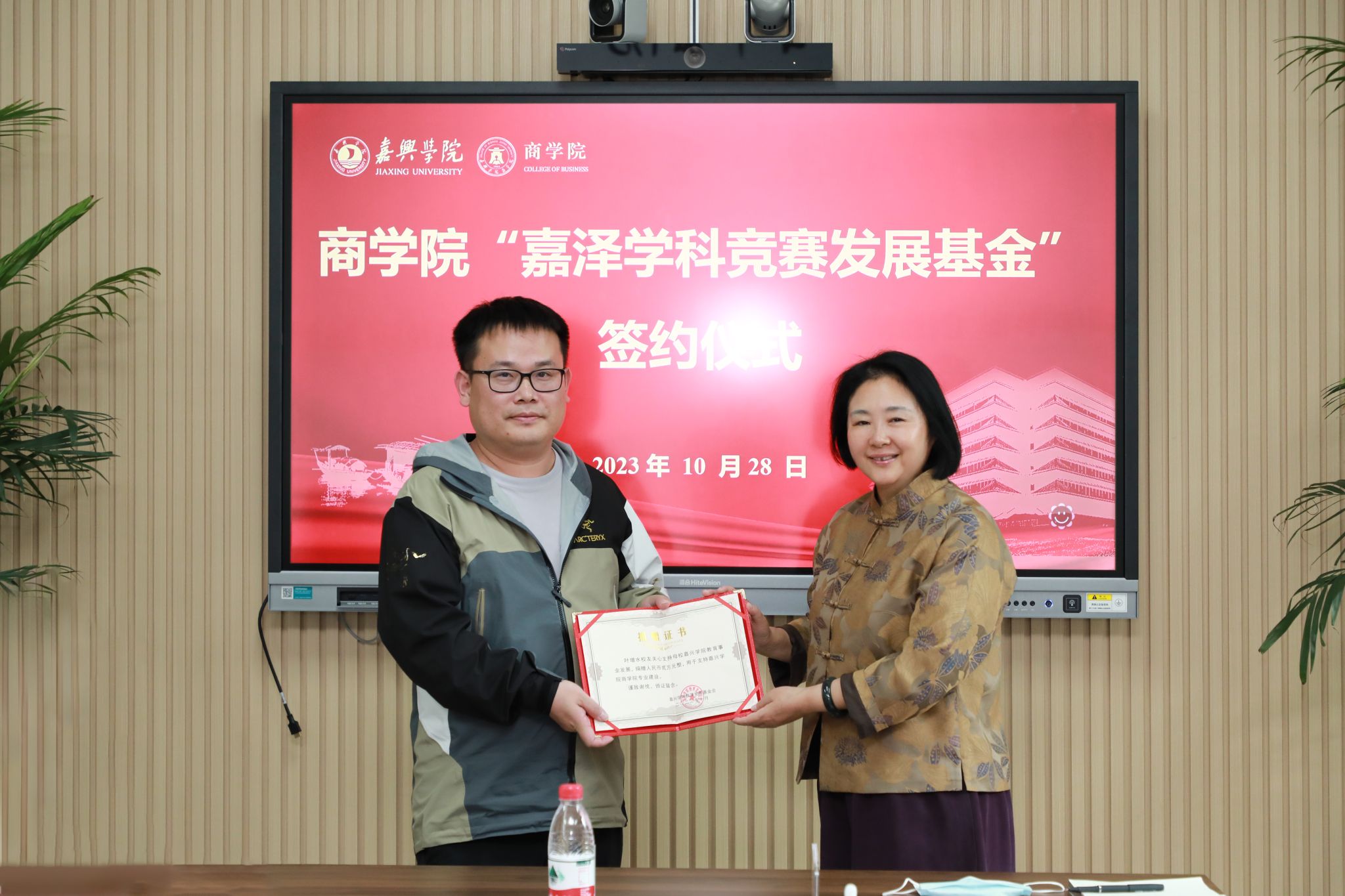 10月28日下午,pg麻将胡了2 “嘉泽学科竞赛发展基金”第六年续约签约仪式在尚德楼345会议室举行。捐赠人、pg麻将胡了2 财务管理2003级校友、容诚会计师事务所业务合伙人叶增水和pg麻将胡了2 院长潘煜双出席签约仪式,签订了捐赠协议书。pg麻将胡了2 党委副书记潘欣主持仪式、相关辅导员和学生代表列席仪式。