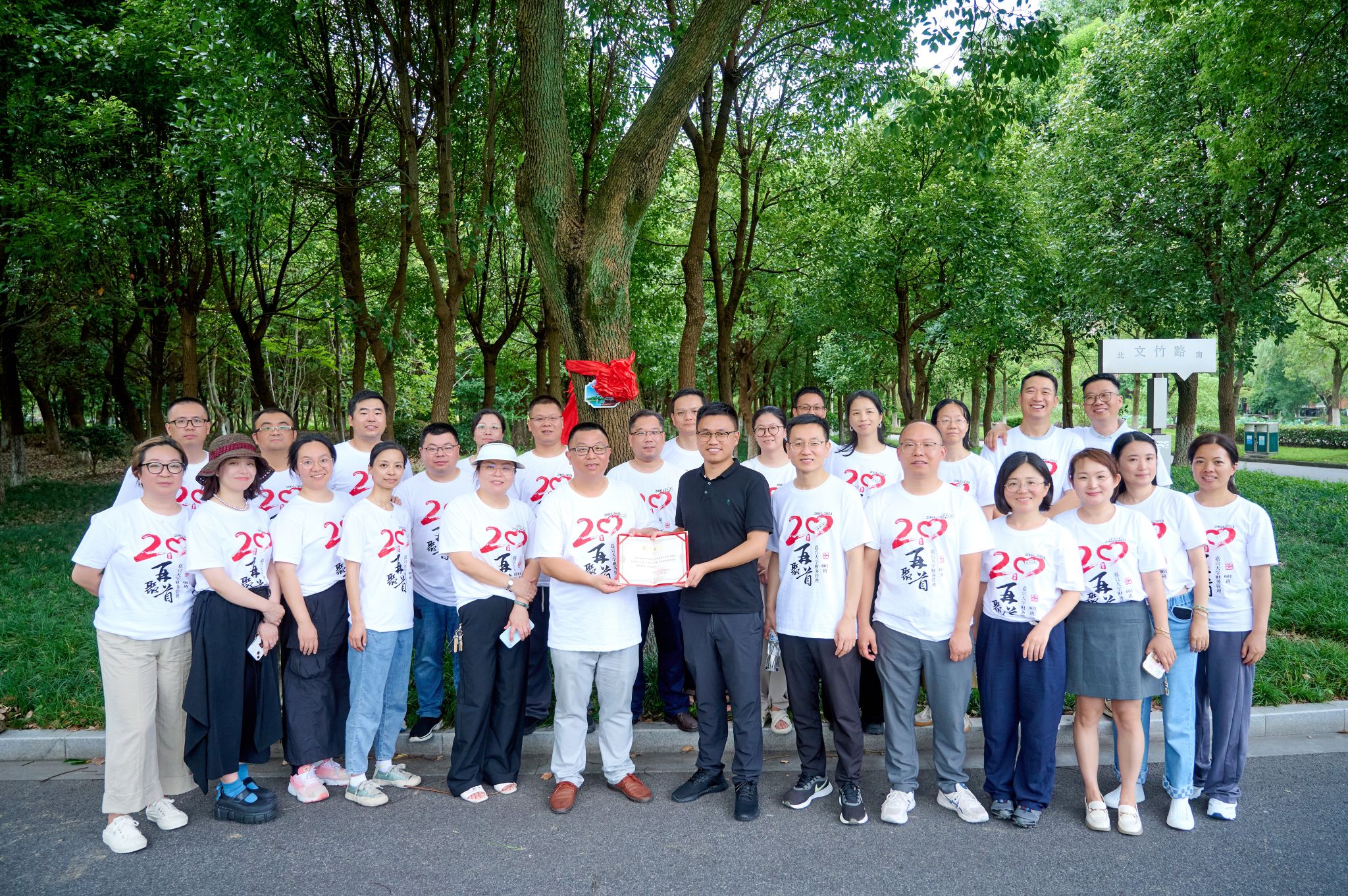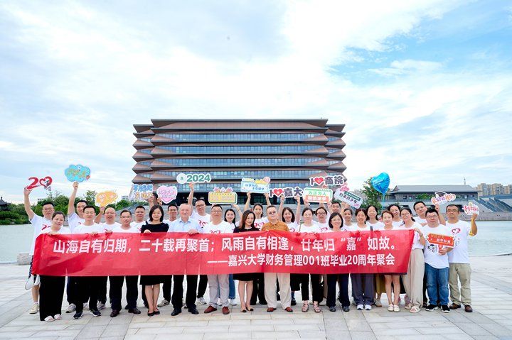 在学校即将迎来110周年校庆的喜庆时刻,财务001班的校友们带着对母校的深情厚谊,于7月27日齐聚一堂,在虹源湖畔共叙师生情、同窗谊,一同庆祝毕业20周年的难忘时刻。