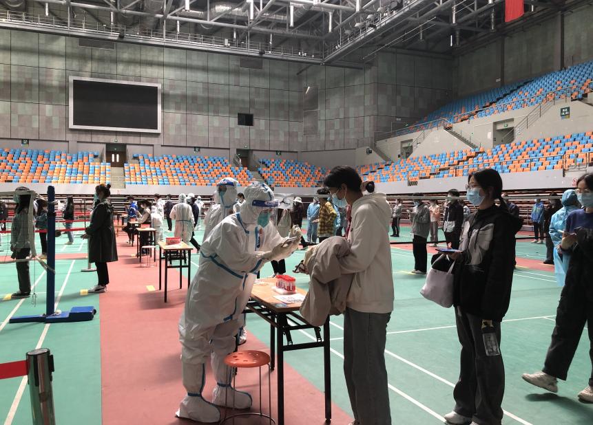4月4日学校核酸检测的任务特别重,除了教职工每周一三五常规核酸检测之外,近20天以来健康码曾出现黄码、红码等异常情况以及近3日有出校记录的学生均需要参加当日的核酸检测。pg麻将胡了2 志愿队分配到的是黄码人员检测专场的任务,检测人员1600余人。中午11点,志愿队员们按照学校部署迅速集结完毕,在经过短暂高效的培训后,即刻投入工作,组织检测人员有序排队、提前扫码登记,做好检前准备。中午到下午,为了缩短检测时间,让检测师生尽量稍等一会,党员志愿者们穿着防护服,坚持不喝水、不吃东西、不休息,连续工作3个多小时,圆满完成任务。