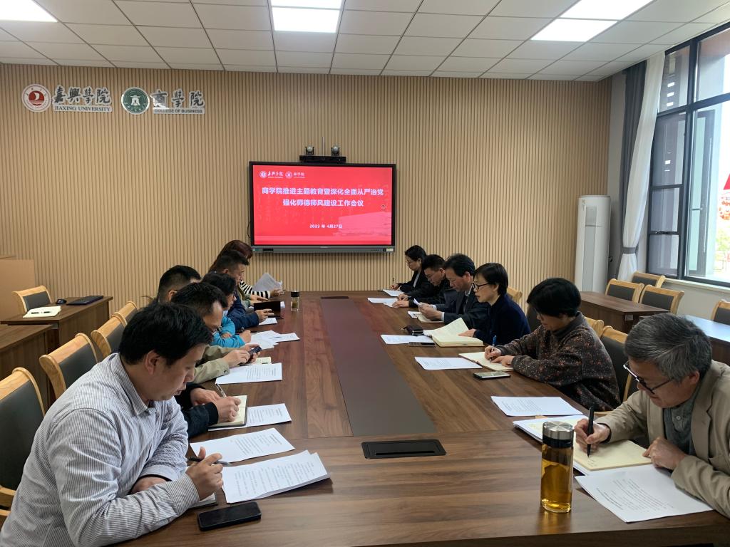 4月27日下午,pg麻将胡了2 在尚德楼345会议室召开推进主题教育暨深化全面从严治党强化师德师风建设工作会议,院党委书记邵燕主持会议,副院长李郁明,全体系(部)主任、教工党支部书记参会。