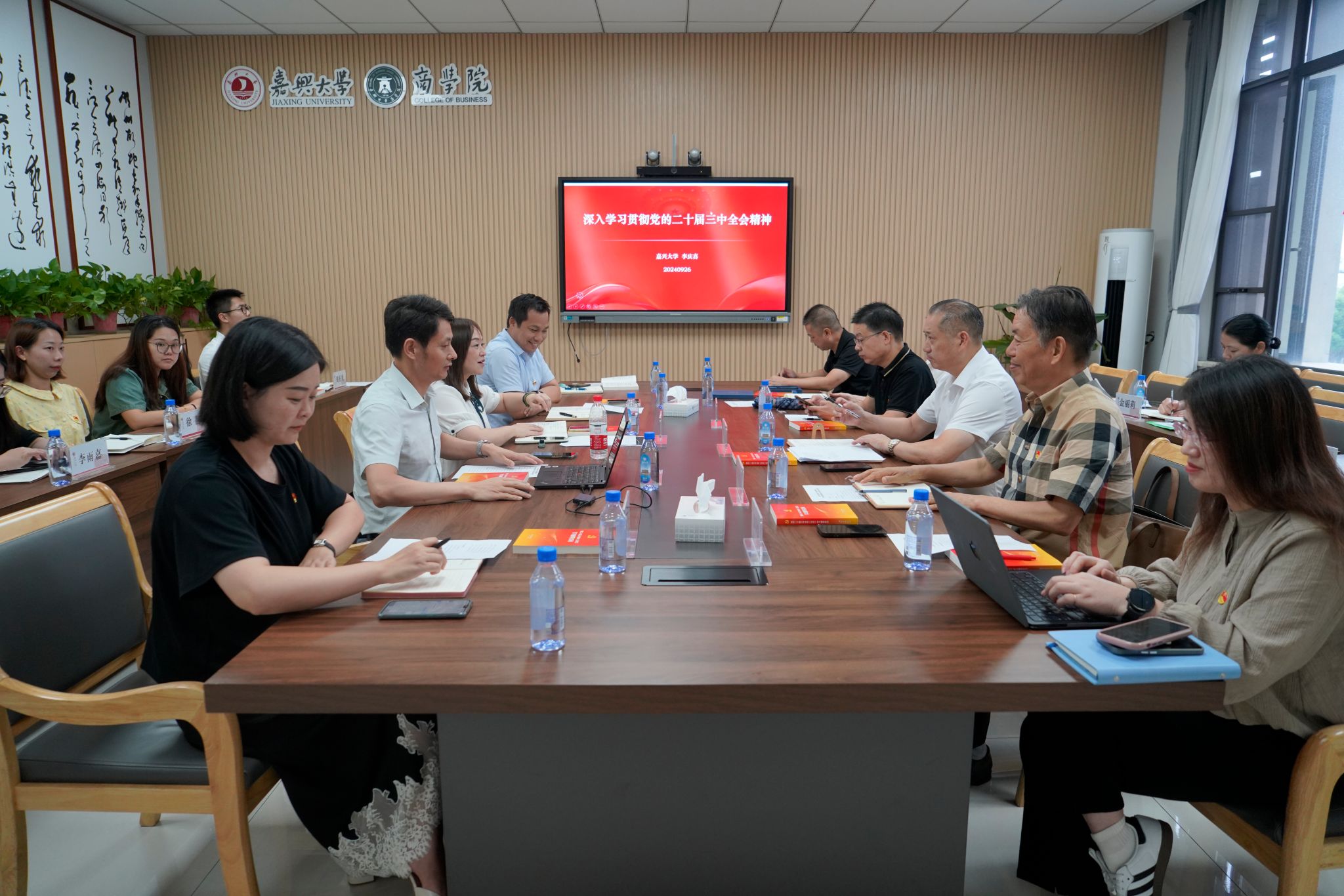 活动邀请了嘉兴大学马克思主义pg麻将胡了2 副教授、硕士生导师李庆喜主讲《深入学习贯彻党的二十届三中全会精神》,双方共同学习了党的二十届三中全会精神,就党建工作、资源共享、项目合作等内容进行沟通交流。