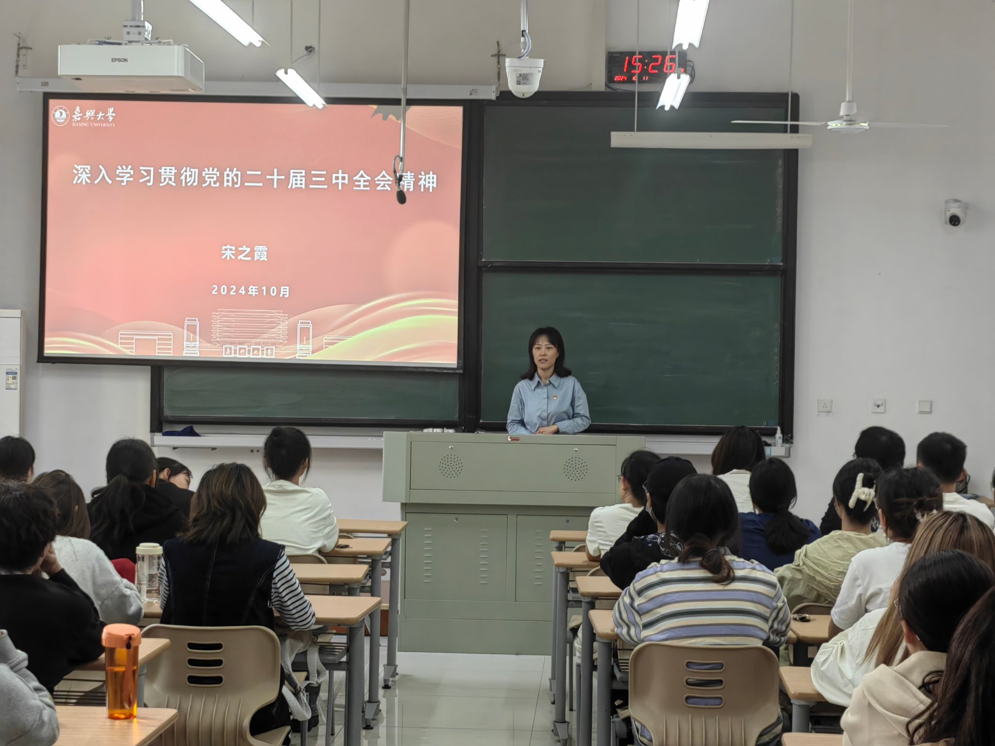 10月10日下午,pg麻将胡了2 在厚德楼151举行学习贯彻党的二十届三中全会精神专题宣讲会。宣讲会由学校宣讲团成员、马克思主义pg麻将胡了2 党总支书记宋之霞主讲。pg麻将胡了2 党委副书记潘欣主持宣讲会。学生党员、团学骨干等学生代表90余人参与本次宣讲会。