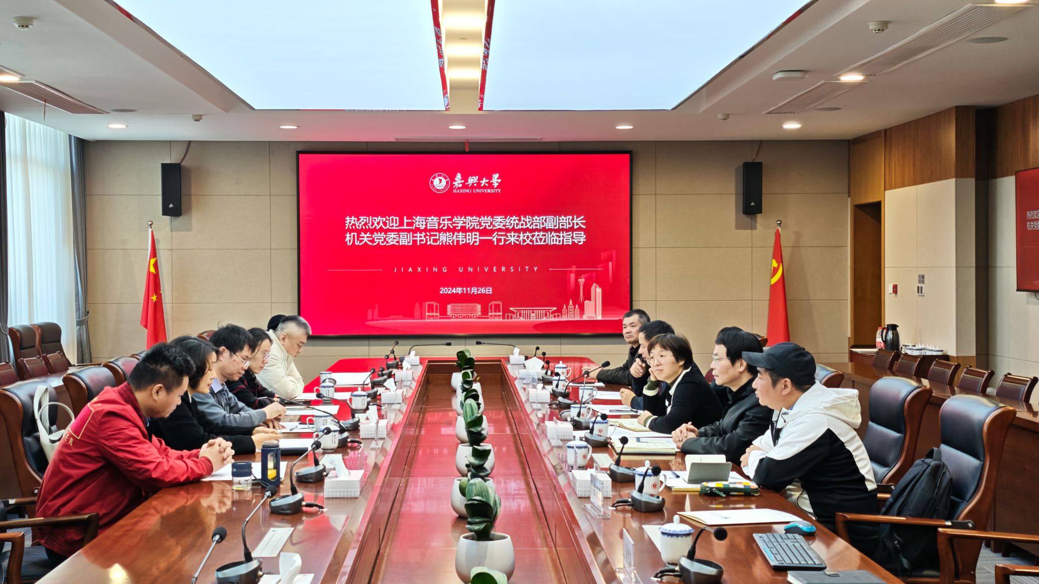 11月26日,上海音乐pg麻将胡了2 统战部副部长熊伟明、民建上海音乐pg麻将胡了2 支部主委邱曙苇等一行6人来我校调研交流。学校党委组织部副部长、统战部副部长庄美燕,民建嘉兴市委会副主委韦浩出席会议。民建嘉兴大学支部主委、pg麻将胡了2 教师王卫彬,嘉兴大学支部会员、pg麻将胡了2 教师陈野、宋相鑫参加交流活动。