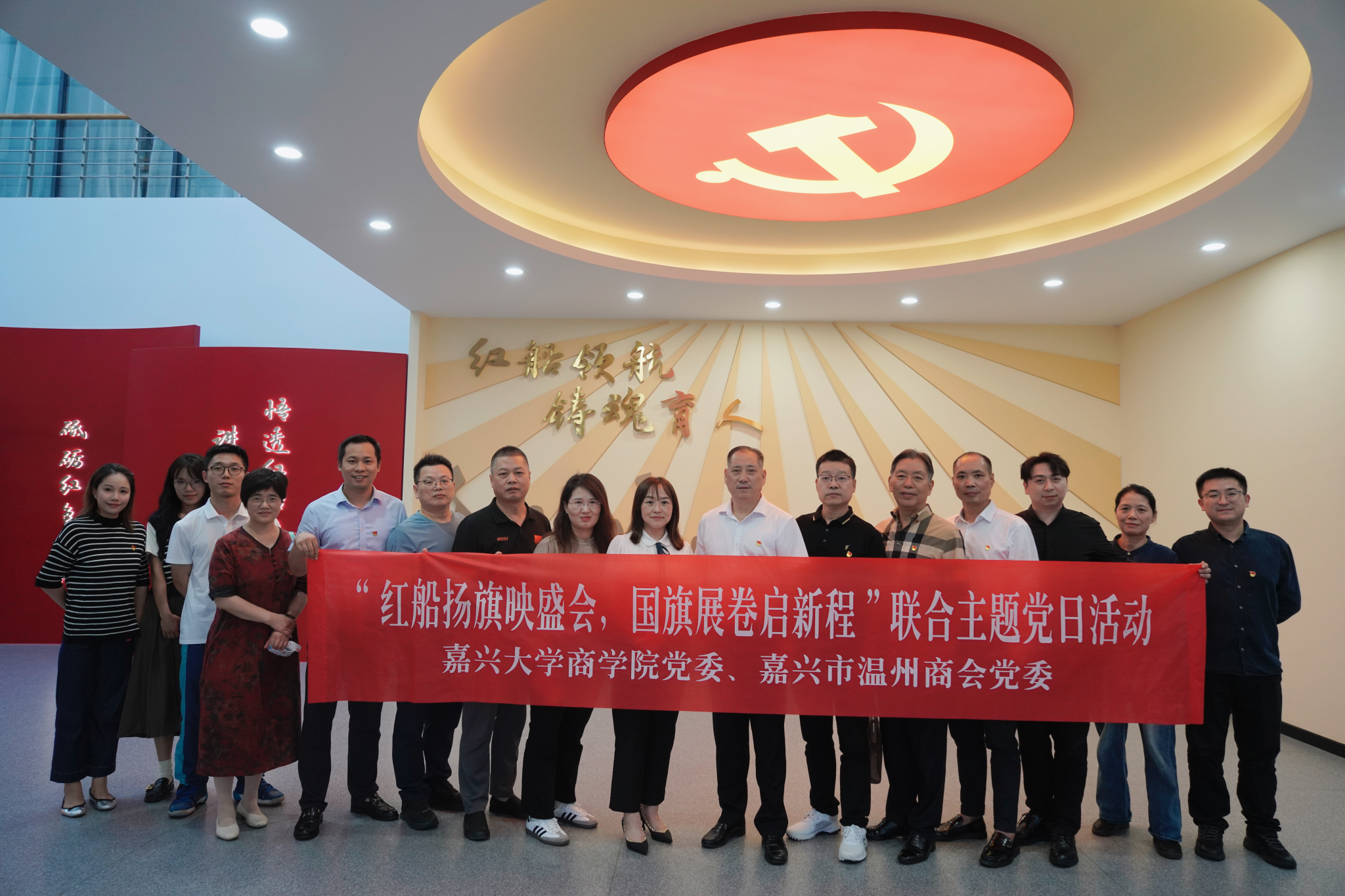9月26日下午,pg麻将胡了2 党委与嘉兴市温州商会党委在兴大学联合举“我在红船旁展国旗”主题党日活动,双方党委班子成员、党员代表参加活动。