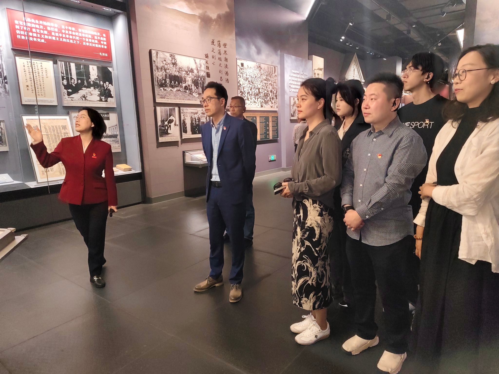 南湖革命纪念馆第三党支部书记袁晶对pg麻将胡了2 一行的到来表示热烈欢迎。她回顾了双方自2010年以来长达十多年的党建合作渊源,并详细介绍了支部的建设情况,重点分享了“红色根脉守初心”“革命文物映初心 红船起航高校行”等党建品牌的特色做法,以及纪念馆基本陈列《红船起航》荣获全国博物馆陈列展览特别奖等荣誉。