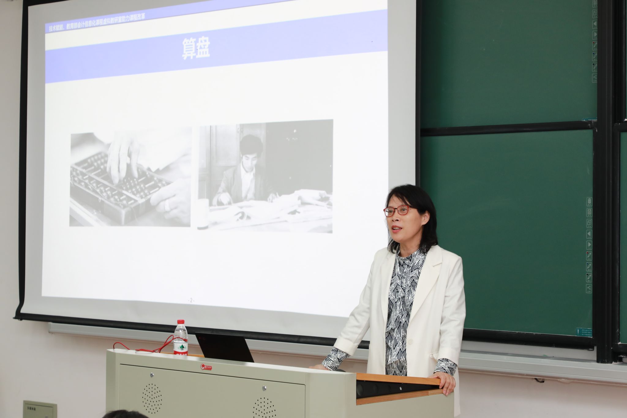 陈教授结合自己三十多年的从教经验,尤其是会计专业信息化建设的发展历程,从“教学案例研讨”“案例思考”“技术赋能课程改革”“会计信息化虚拟教研室”等四个方面,形象生动地讲解了技术的驱动与力量将会改变传统手工环境下数据的处理模式与观念,技术赋能会计专业课程改革如何实施,并对我校会计硕士的培养方式、课程建设、教研室建设等方面提出了建议。陈教授指出,在人机共存的时代,经济越发达会计越重要,账表计算、数据溯源实现正向、逆向全方位业财融合数据处理的能力是不可或缺的,技术可以为会计赋能,应用信息技术来解决会计、财务、审计等专业问题。她还提出了“32L”的教学改革,即懂业务、懂专业、懂技术、学习掌握EXCELSQL,鼓励同学们着力提升自身的业务能力、专业能力和信息技术能力,努力成为信息时代不可或缺的财会人才。