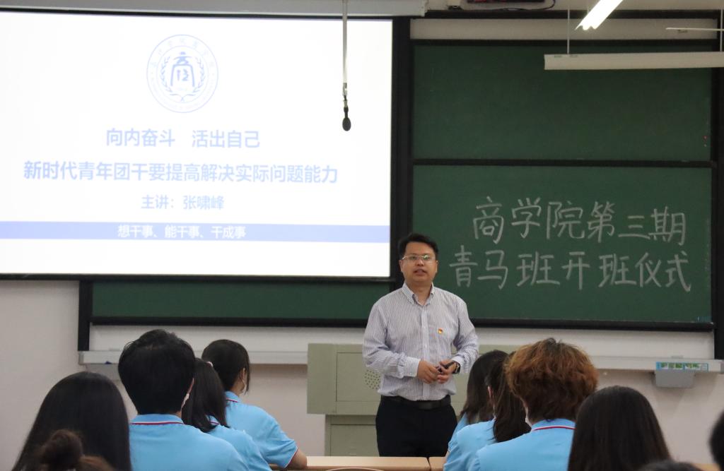 会上,李黎为第三期青马工程培训班授旗。物流211班王静作为学员代表讲述加入青马班的决心和意志,号召大家努力成长为一名优秀的学生骨干,做优秀青马人。开班仪式后,张啸峰为全体学员作题为《向内奋斗,活出自己--新时代青年团干要提高解决实际问题的能力》的开班第一课。