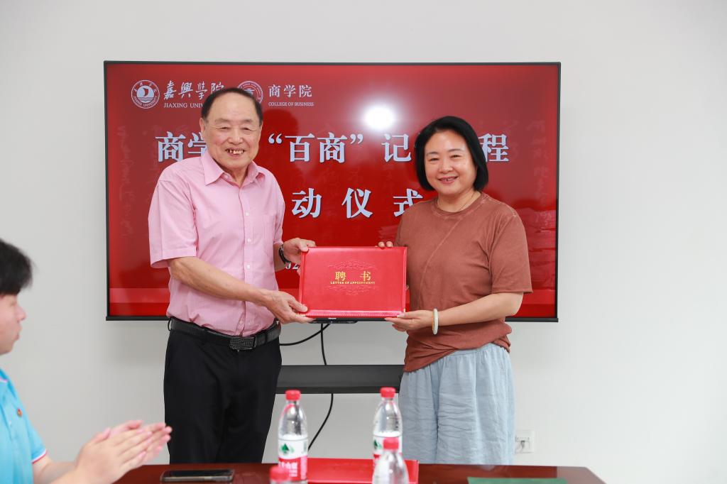 会上,潘煜双为“百商”记忆工程“老先生”顾问团顾问罗允尧和“百商”记忆工程专业指导顾顺奎颁发聘书,邵燕为“百商”记忆青年志愿服务队授旗。
