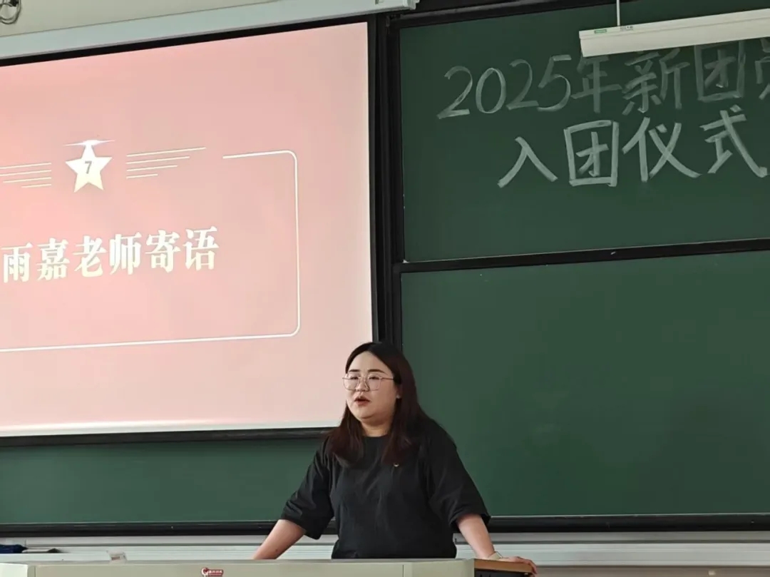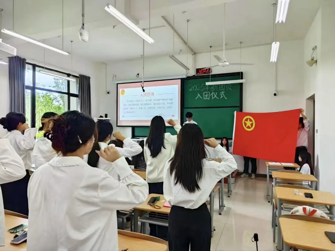 仪式在庄严的国歌下拉开了序幕。主持人宣读了2025年新发展团员名单,新团员将团徽佩戴于左胸前,标志着正式成为中国共青团组织的一员。随后优秀团员代表带领全体新团员进行了入团宣誓,新团员向团组织表明自己的入团决心,誓言铿锵有力,字字彰显着对共青团的坚定信仰,向祖国发出了“请党放心,强国有我”的最强音!