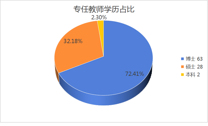 pg麻将胡了2 拥有一支爱岗敬业、素质优良、学缘结构相对合理,发展趋势良好的师资队伍。现有专任教师87人,其中正高职称14人,副高职称26人,博士63人。近年来,pg麻将胡了2 积极开展高学历、高职称人才引进的同时,推行师从名师、学历学位进修、出国进修等教师提升项目,国(境)外访学进修老师比例占专任教师的36.71%,双师型教师比例为70.89 %。